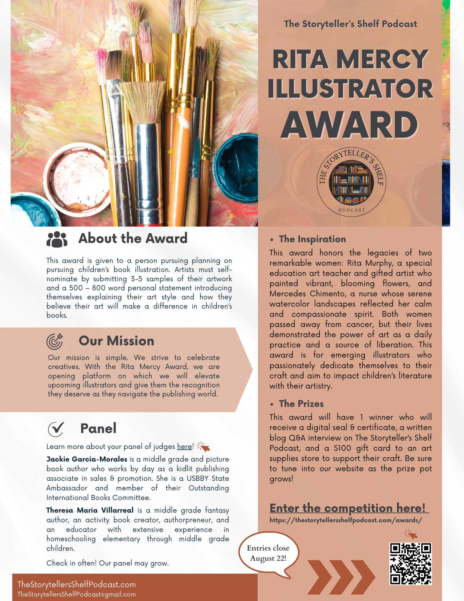 - This award will have 1 winner in each category who will receive a digital seal & certificate, a written blog Q&A interview, and an on air customized episode on The Storyteller’s Shelf Podcast. One overall winner will win a $100 gift card.